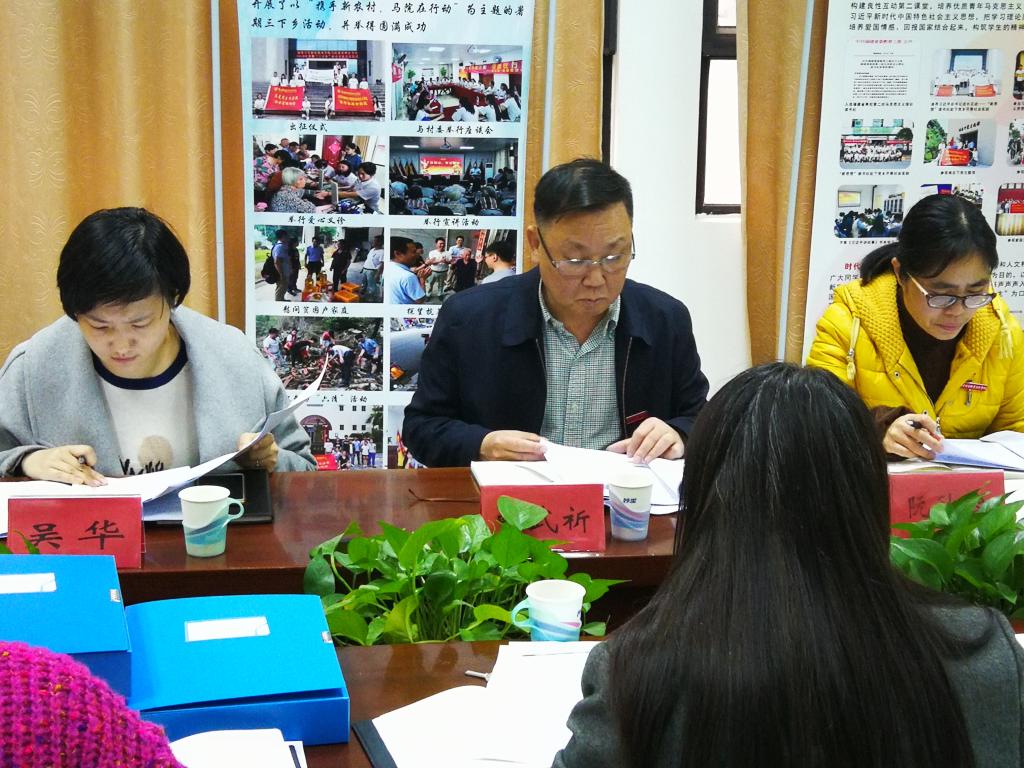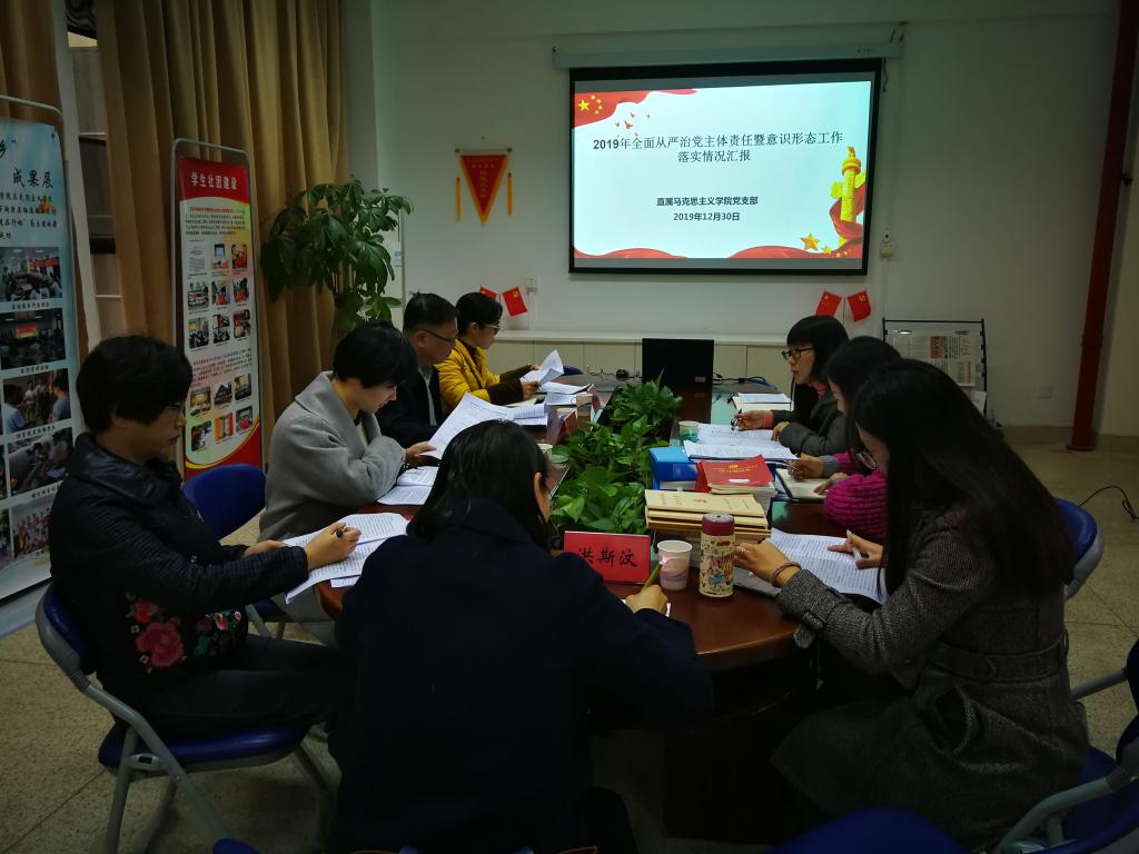 2019年12月30日下午,学校全面从严治党主体责任暨意识形态工作专项巡查“回头看”交叉巡查组组长曾武祈书记、成员阮秋容、吴华、程剑芬一行到马克思主义学院行政楼107会议室检查2019年度直属马克思主义学院党支部全面从严治党主体责任暨意识形态工作落实情况。直属马克思主义学院党支部全体委员参加会议。