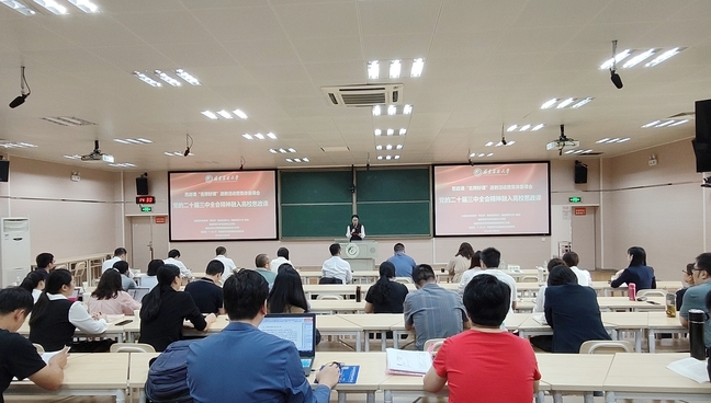 会上,复旦大学马克思主义学院院长李冉教授分别从四个难点、四个关键对党的二十届三中全会精神融入高校思政课的思路做教学指导。随后,张小瑛、陈婧两位思政课教师围绕党的二十届三中全会精神有关内容,结合“习近平新时代中国特色社会主义思想概论”课、“形势与政策”课进行了教学展示。