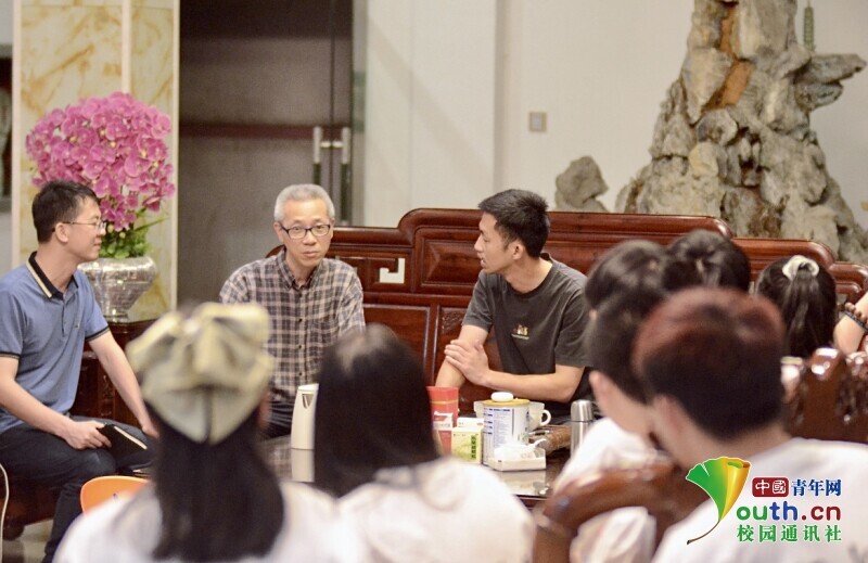 图为“马上逐梦”队队员们和中川村胡育虎书记开展座谈会。中国青年网通讯员 赵靖宇 摄