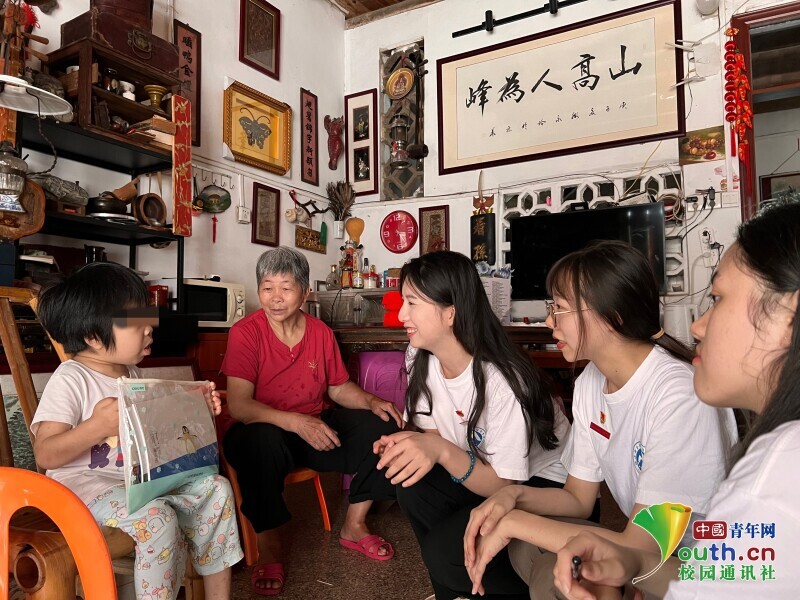 图为“马上逐梦”队队员对村民进行访谈调研。中国青年网通讯员 赵靖宇 摄