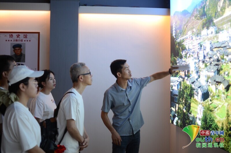 图为中川村胡育虎书记带领“马上逐梦”队队员们参观侨史馆。中国青年网通讯员 赵靖宇 摄