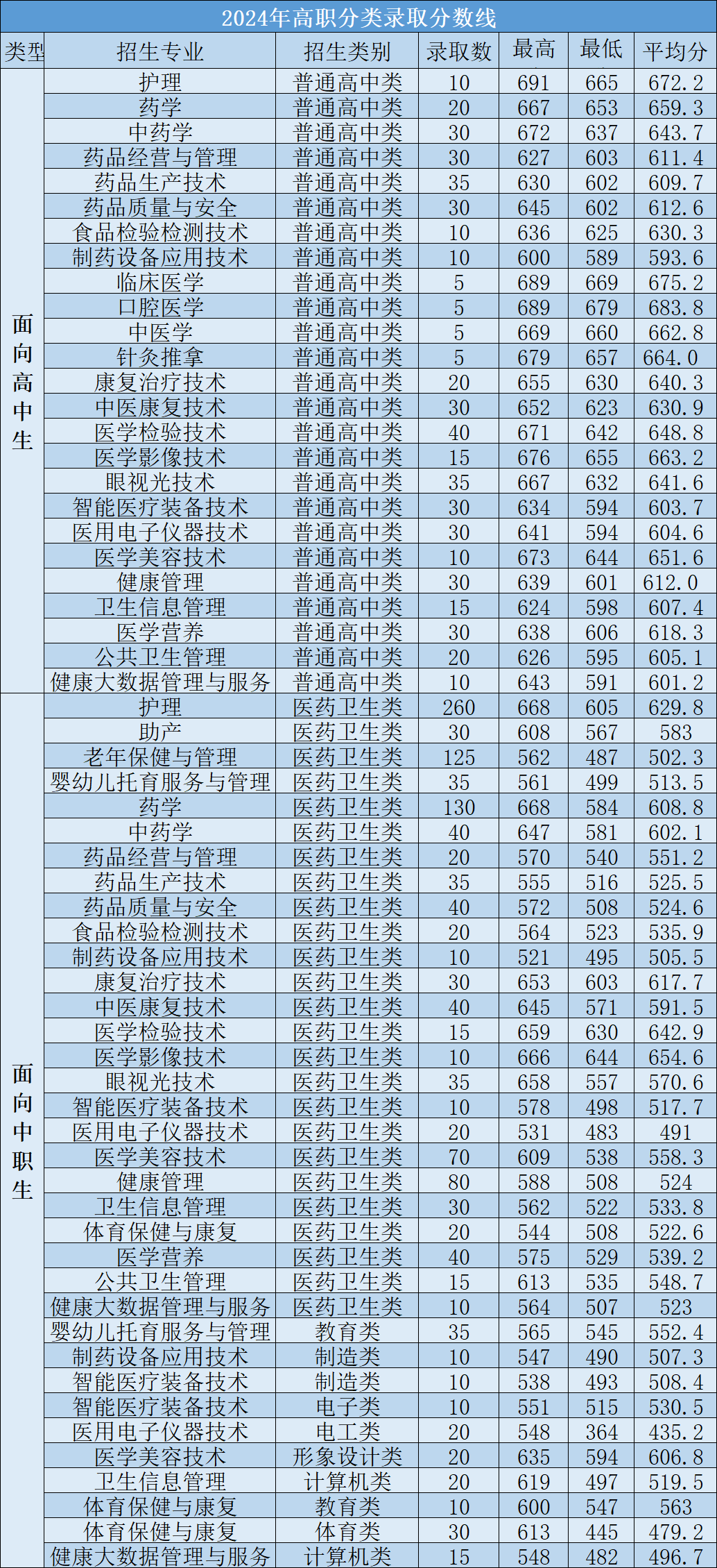 2024年高职分类录取分数线