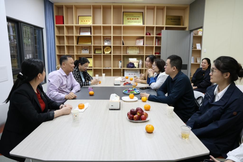 随后,李萍一行实地考察了我校中医药文化馆 、“一站式”学生社区学生服务中心、匠心驿站和大学生就业服务驿站。期间,校党委书记曾武祈、副校长黄铭珊同李萍一行进行座谈交流,曾武祈详细介绍我校发展情况及未来展望,双方围绕学校资助工作进行深入探讨。