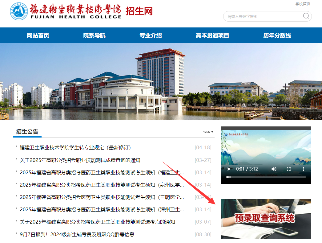 ①进入页面,点击“预录取查询系统”