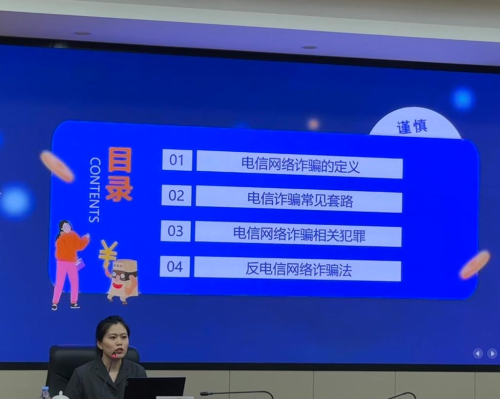 此次培训由闽侯县人民法院陈叶玲担任宣讲人,她围绕电信网络诈骗的定义、电信诈骗常见套路、电信网络诈骗相关犯罪、反电信网络诈骗法四个方面,通过案例分析,以通俗易懂的语言讲解了常见诈骗案件的特点和犯罪分子的惯用手法、作案方式、识别和防范技巧。