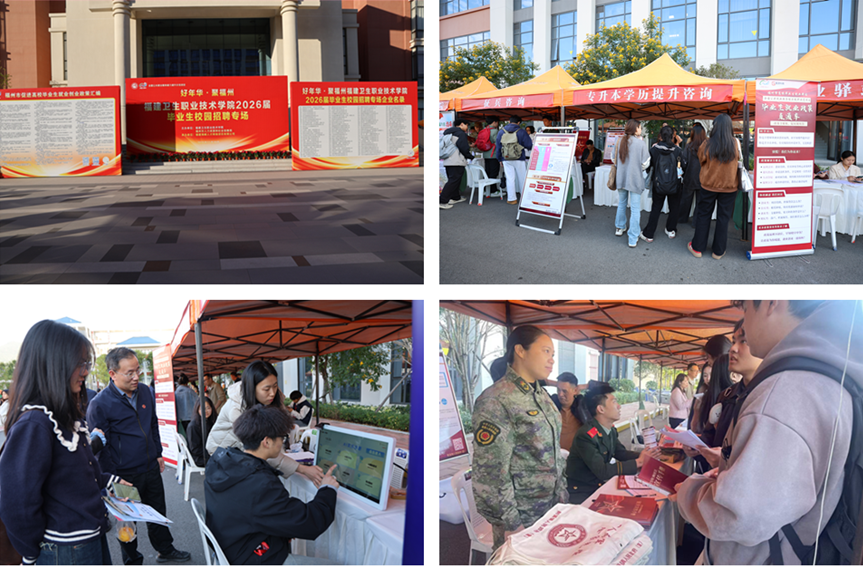 11月20日,福建卫生职业技术学院臻善楼前广场彻底“燃”了——以“好年华・聚福州”为主题的2026届毕业生秋季校园专场招聘会,成了校企双向奔赴、供需精准对接的“求职热场”。