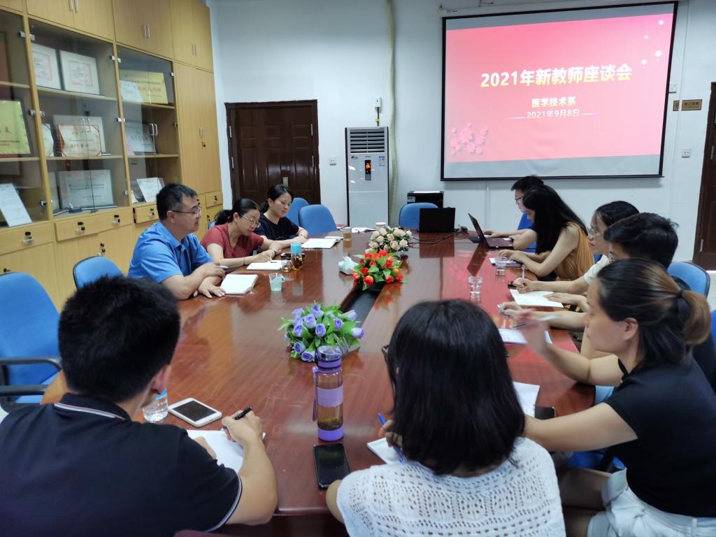 夏天的余热还未褪去,金秋的风已徐徐吹来。2021年9月8日医学技术系召开2021年新教师座谈会。参加此次座谈会的人员有:副校长黄铭珊、系主任翁绳和、党总支书记陈俊颖、副主任钟伟雄以及七位新入职教师。