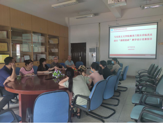 为贯彻我校思想政治工作会议精神和示范校建设任务,落实立德树人根本任务,确保育人工作贯穿教育教学全过程,2020年6月24日,马克思主义学院熊美兰院长、胡济林老师、邱萍老师利用午休时间前来医学技术系给报名参加此次“课程思政”教学设计竞赛的4位教师进行指导。