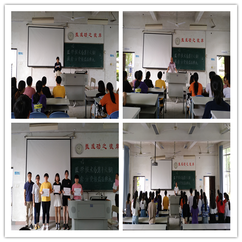 2018年6月22日上午,医学技术系在系部第一阶梯教室举行第十六期业余党校结业典礼。出席本次典礼的人员有我系党总支副书记邱滚忠、学生党支部书记黄玲云老师、辅导员曾庆才老师以及全体学员们。本次典礼由16检验301班张晓丹同学主持。