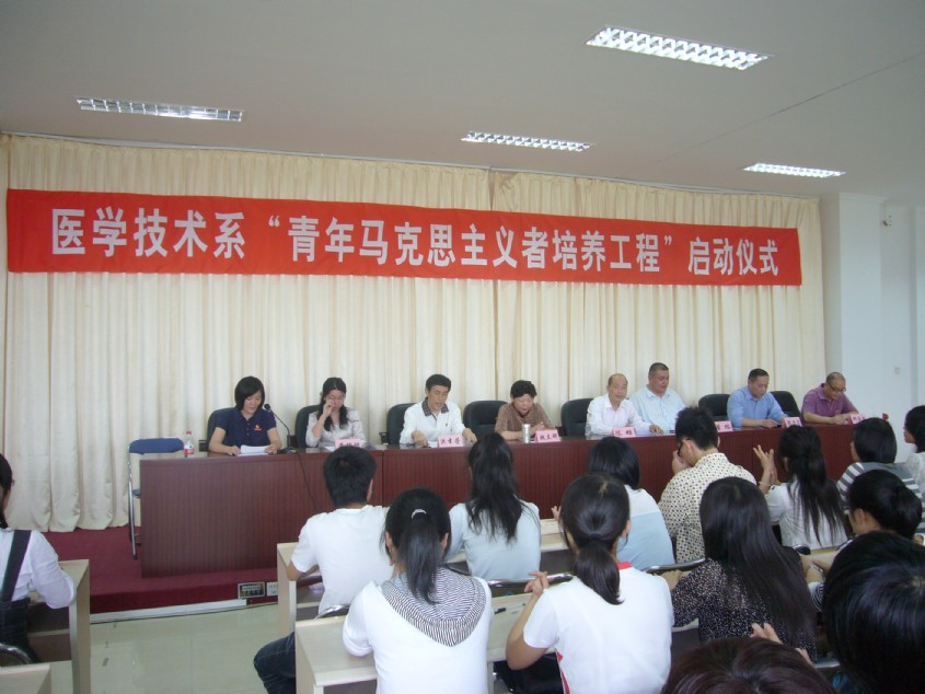 在纪念五四运动九十一周年这个光荣的日子里,医学技术系在行政楼六楼会议室隆重举行“青年马克思主义者培养工程”(以下简称“青马工程”)启动仪式。院党委陈雄副书记、魏立娜副院长、党委工作部董榕部长、学工处郑力宏处长、黄铭珊副处长、院团委邱滚忠书记、系党总支洪聿荣副书记等领导出席了启动仪式。 “青马工程”第一期培训班共有学员50余人。启动仪式由系团总支书记黄小芳主持。