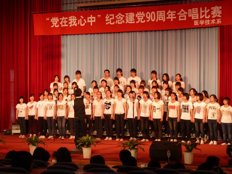 为回顾党的光辉历程,讴歌党的丰功伟绩,医学技术系于2011年4月26日下午在学术厅举办“党在我心中”庆祝建党90周年合唱比赛。