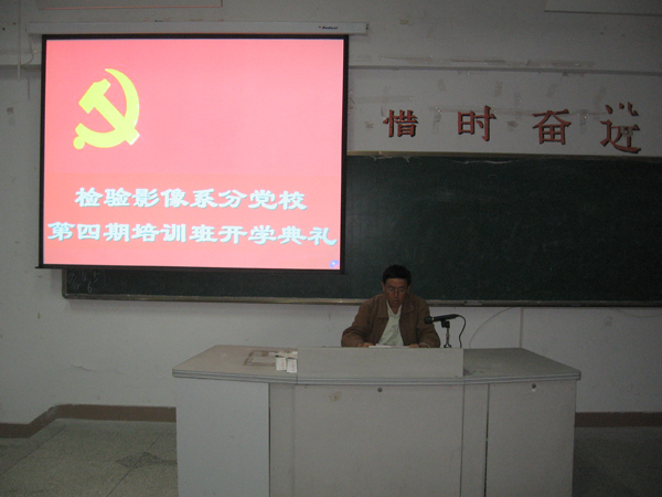 2008年11月18日下午,检验影像系在第二阶梯教室举行检验影像系第四期分党校培训班开学典礼。本学期我系业余党校从10月份开始报名,经班级民主推荐,团支部考核,班主任、辅导员把关,系团总支审查,系党总支审批,共招收学员105名。开学典礼由系团总支周微琳老师主持,系党总支洪聿荣书记,全体培训班学员出席了开学典礼。