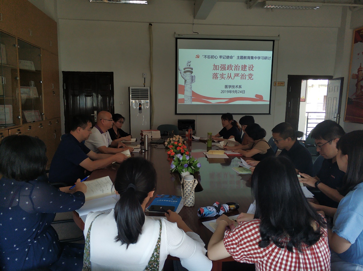 9月24日下午,医学技术系党总支在系部301会议室开展“加强政治建设,落实全面从严治党”专题第二场学习研讨。本次会议由医学技术系党总支负责人邱滚忠同志主持,医学技术系领导班子、各党支部书记、全体辅导员参与。
