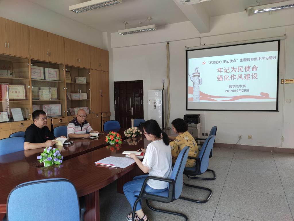 9月29日,医学技术系党总支在系部301会议室开展“牢记为民使命,强化作风建设”专题第二场学习研讨。本次会议由医学技术系党总支负责人邱滚忠同志主持,医学技术系领导班子参与。
