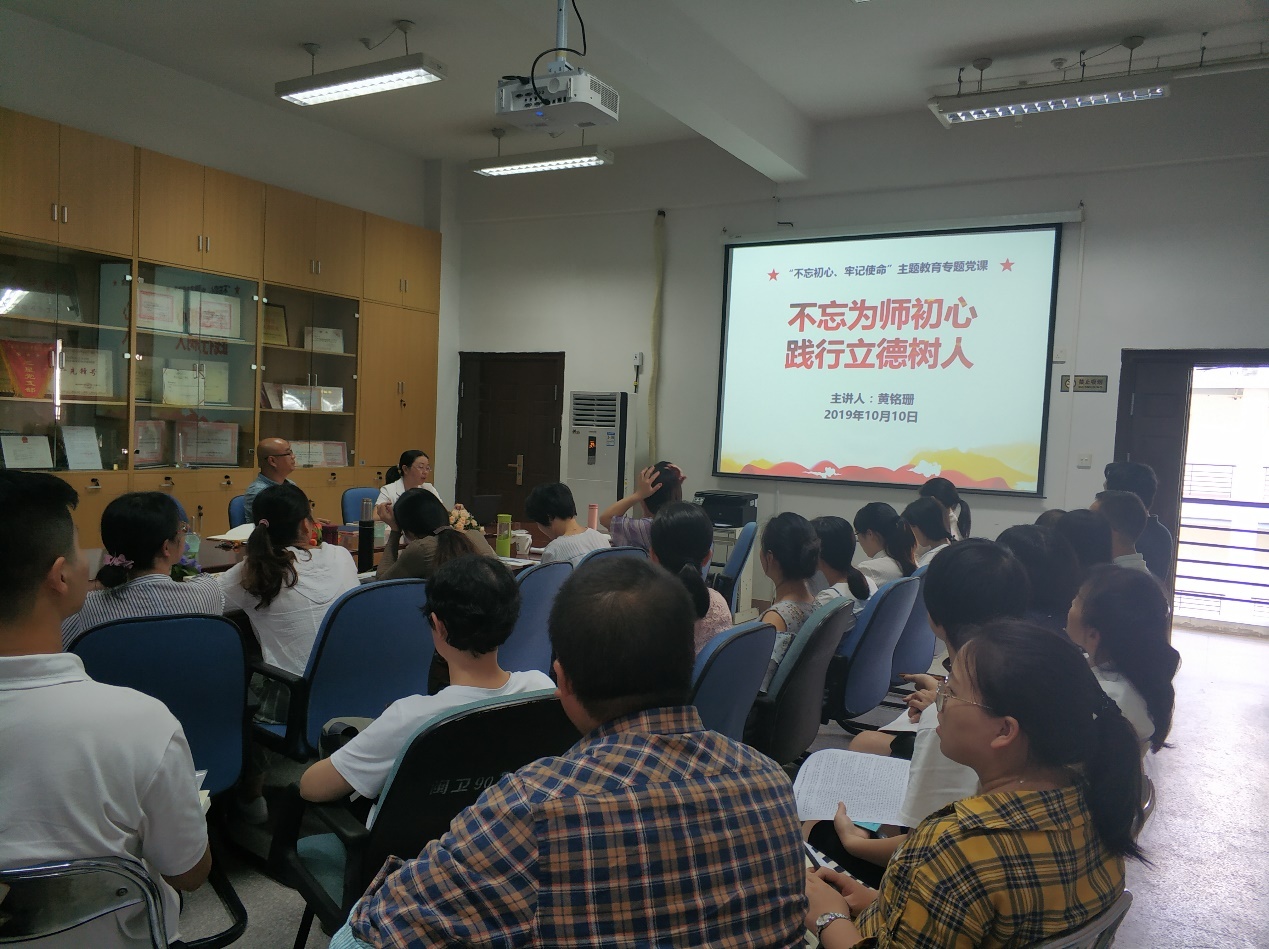 10月10日,学院党委委员、副院长黄铭珊同志为医学技术系全体党员讲授专题党课《不忘为师初心 践行立德树人》。本次学习作为师德师风教育内容,医学技术系党总支安排了非党员教师共同参加学习。