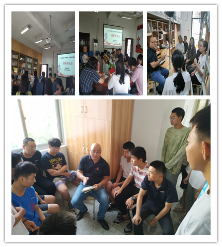 (图为邱滚忠同团学干部、辅导员、宿舍学生等座谈 )
