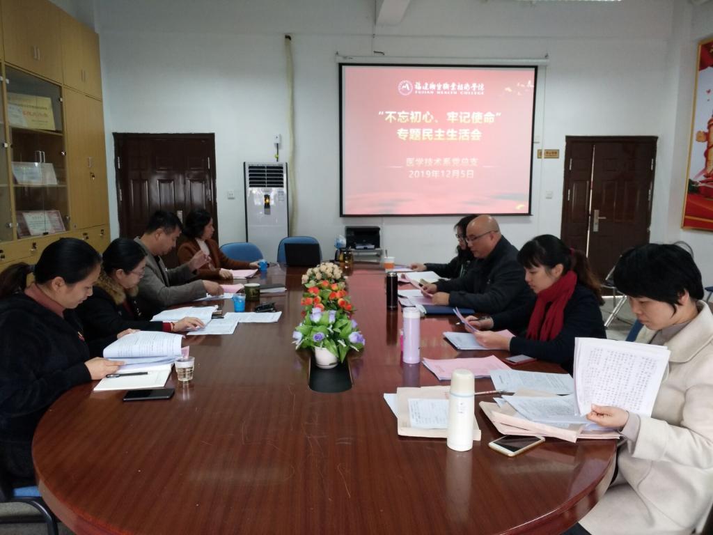为开好专题民主生活会,医学技术系党总支会前认真制定“不忘初心、牢记使命”专题民主生活会方案,深入学习领会习近平新时代中国特色社会主义思想,扎实开展谈心谈话,征求意见,撰写班子检视剖析材料,为召开民主生活会打下了良好基础。