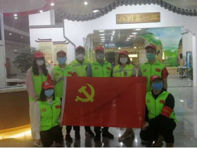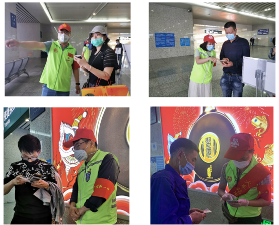 我们13党员在火车站出站口防疫一线上