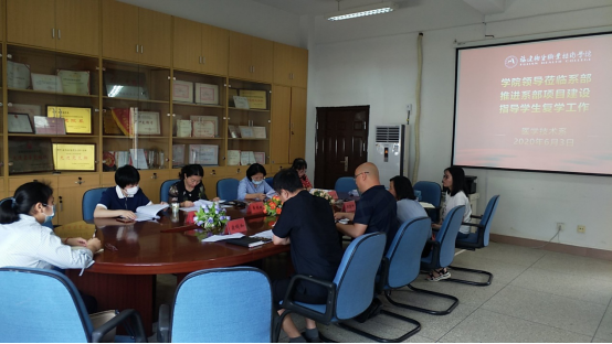 2020年6月3日上午,医学技术系党总支在系部会议室召开2020年上半年全面从严治党主体责任落实情况督查会议,黄铭珊副校长、党委工作部组织干部科科长黄小芳、纪检监察室监察科科长廖晓愿、管理系专职组织员张云霞一行到场巡查,医学技术系领导班子成员、总支支委、各支部代表参加本次会议。