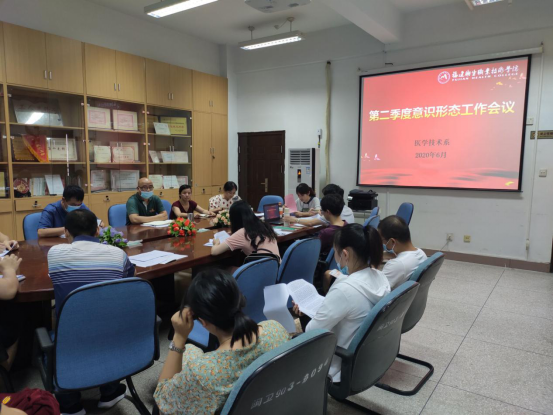 2020年6月18日中午,医学技术系在系部301会议室召开2020年第二季度意识形态工作会议。医学技术系领导班子、党总支委员、各党支部书记、教研室主任、实训中心主任、办公室主任、辅导员参加了此次会议,会议由医学技术系党总支负责人邱滚忠同志主持。