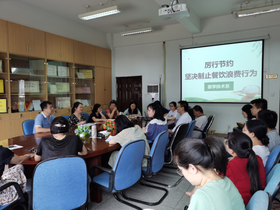 9月10日,医学技术系在系会议室召开系部教职工会议,深入学习习近平总书记关于制止餐饮浪费行为作出的重要指示精神,进一步教育引导系部教职工牢固树立“节约光荣、浪费可耻”的意识。会议由医学技术系党总支书记陈俊颖主持。
