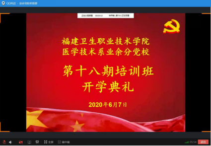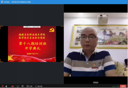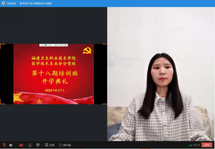 202067日,医学技术系举行第十八期业余分党校培训班开班仪式。本次开班通过网络平台线上开展,医学技术系党总支负责人邱滚忠老师,第一党支部书记林雪金老师、第二党支部书记钟伟雄老师、学生党支部书记黄玲云老师,以及97名学员共同参加本次开班仪式。本次开班由18检验302班江鹏同学主持。