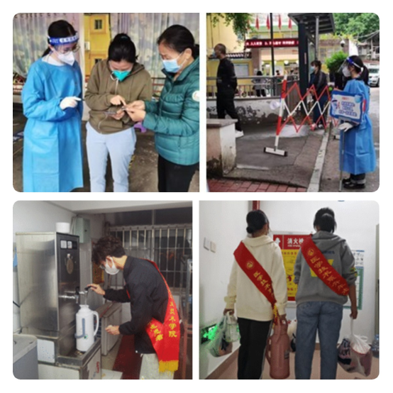 主动落实“疫情要防住”。医学技术系师生党员冲锋在前,在校园值班值守、学生管理、社区志愿服务等疫情防控工作中履职尽责、担当作为。团总支紧急招募“朝阳小分队”志愿服务队成员,为部分在校园宿舍内留观学生提供生活保障,值守校园各入口,劝导同学不要点外卖。师生们的主动行动,共同守护平安校园,服务群众。