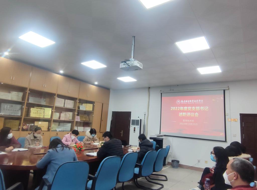 1220日,医学技术系党总支召开会议,听取各党支部书记抓党建工作述职,并开展现场考核评议。党总支委员、各支部党员代表参加会议,会议由医学技术系书记柯琼莺主持。