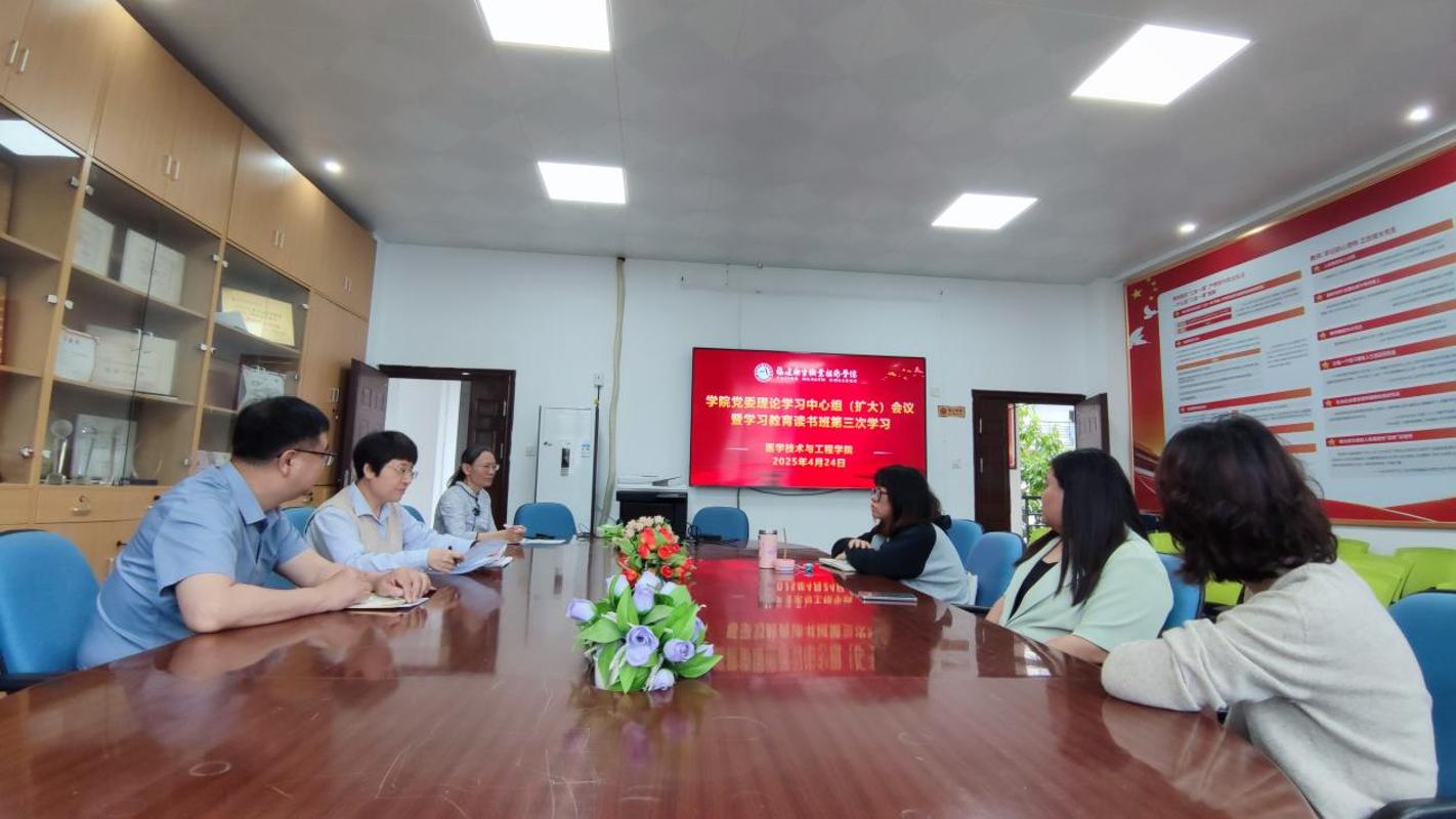 4月24日,医学技术与工程学院举行党委理论学习中心组(扩大)会议暨深入贯彻中央八项规定精神学习教育读书班第三次学习。学院党委书记柯琼莺主持会议,院长翁绳和、党委委员参加学习。