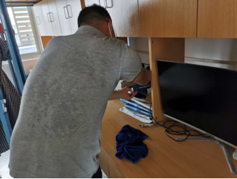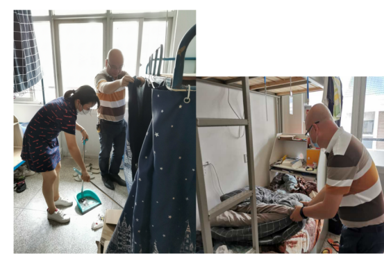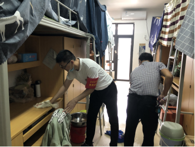 宿舍内外都有老师们辛勤的背影,他们弯着腰,撸起袖子,不怕脏不怕累,用抹布仔仔细细的将桌椅、窗户、床架柜子等擦拭一遍,不放过任何一粒灰尘;厕所、浴室、阳台、走廊......只为同学们返校时能有个整洁的宿舍环境。看到每个老师挥汗如雨、不辞辛苦的做好打扫工作,邱书记鼓励大家说:“只要能让同学们返校时住进干净整洁的宿舍,感受学校对他们的关心和关爱,哪怕我们再苦再累,流再多的汗也是值得的。”