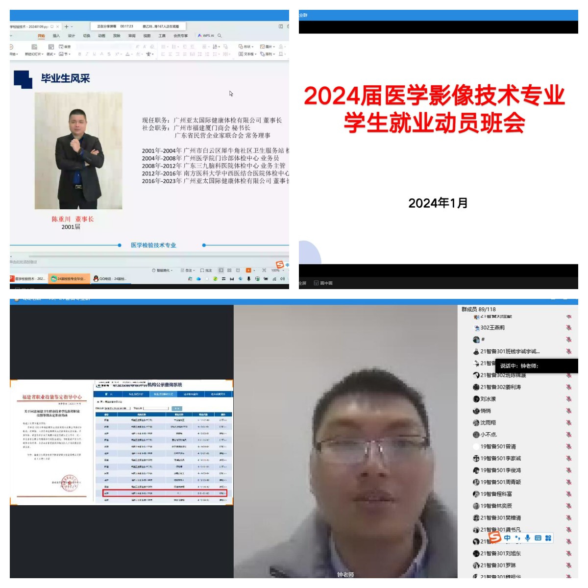 为全面推进学院2024届毕业生就业工作,引导毕业生树立正确的就业观念,提高就业积极性和主动性,近日医学技术与工程学院组织召开2024届毕业生就业动员主题班会。各专业带头人、优秀校友、毕业班辅导员齐上阵,帮助毕业生树立正确的择业观和就业信心。