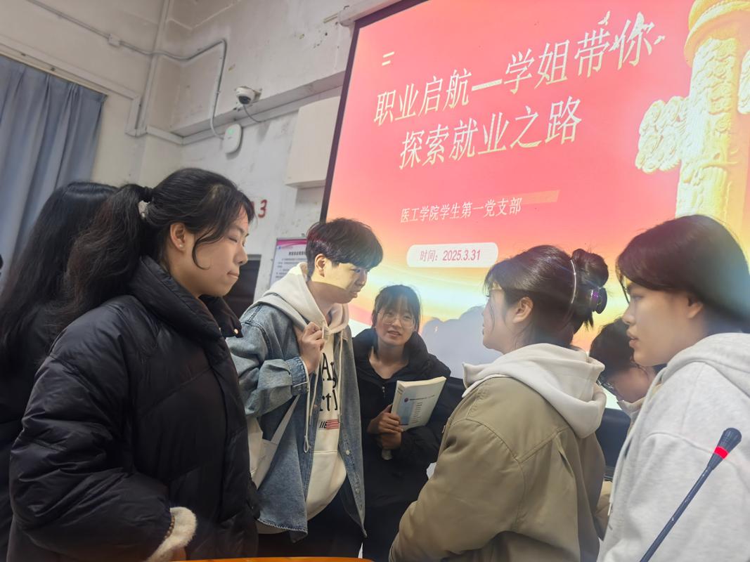 为深入贯彻落实2025年两会关于就业工作的精神,促进高校毕业生高质量充分就业,3月31日在毕业生返校参加招聘会之际,医工学院学生第一党支部举办《职业启航——学姐带你探索就业之路》讲座,本次讲座特邀2022届优秀校友张颖慧主讲。