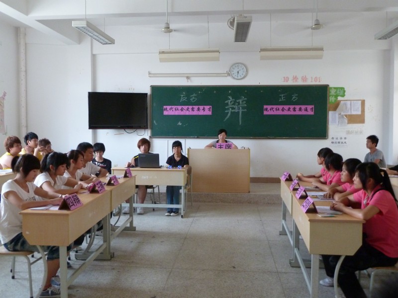 医学技术系第四届大专生辩论赛半决赛的两场赛事分别于5月10日、11日下午5点30分在教学楼205教室激烈开辩。本次比赛采用国际大专生辩论赛赛制,增设了攻辩阶段,使整场比赛更具看点。第一场辩论题目:现代社会更需要通才还是专才?对阵的正反方分别为10检验301和10影像301(一队)代表队。第二场辩论题目:大学生宽松管理利大于弊还是弊大于利?正反方分别为10影像301(二队)和09检验301代表队。