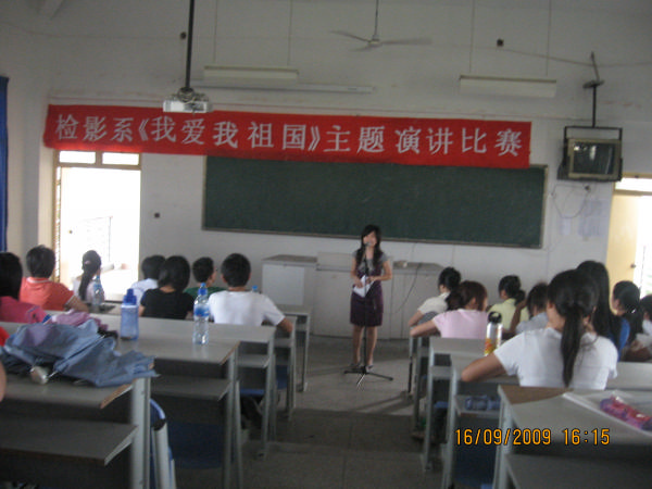 为庆祝中华人民共和国成立60周年,同样也为了增加学生的爱国情操,增强他们的爱国意识,检验影像系于2009年9月17日在系部第二阶梯教室举行“我爱我的祖国”演讲比赛。