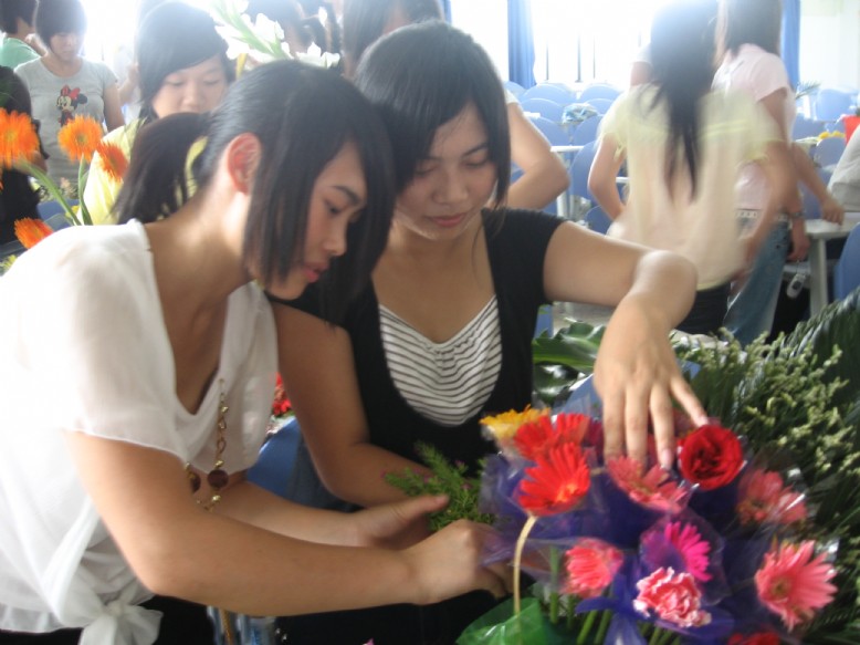 参赛选手多达60人,共29组。花卉有百合、玫瑰、满天星、万年青、龟背竹等二十多种;器皿则有素雅花盆、玻璃花瓶、竹筒、藤篮等。同学们怀着对奥运会的期盼、对四川灾区同胞的祝福和把母校建设成为一流高职高专类院校的决心,充分发挥自己的想象力,把自己对生活和美的感悟,通过手中的一枝枝鲜花,淋漓尽致地表达了出来。