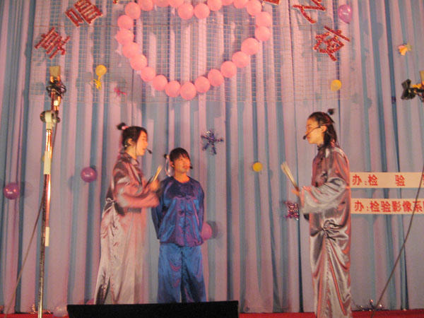 为加强校园精神文明建设,丰富校园第二课堂,活跃师生文化生活,学院定于2OO7年4月至5月举办以“文明校园因你——和谐”为主题的校园文化艺术节。 检验影像系于2007年5月9日晚6:00在院学术厅举办了“享唱之约综艺之夜”文艺晚会。晚会以艺术节的魅力组合小组唱为主线,穿插了小品、舞蹈、话剧、小提琴独奏、歌曲串烧等节目,使整场晚会节目精彩纷呈,形式多样,在晚会中的游戏——最想听你唱和争分夺秒节目中,融入了场外观众的互动参与,把整场晚会推向高潮。最后,晚会在闭幕曲《年轻的战场》中落下了帷幕。 本次晚会由检验影像系团总支、学生会承办,晚会共设17个节目,历时两个多小时。当晚院学术厅座无虚席,出席晚会的有检验影像系领导、辅导员、专兼职班主任、兄弟系部学生会主席以及检验影像系全体学生。