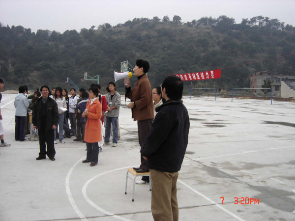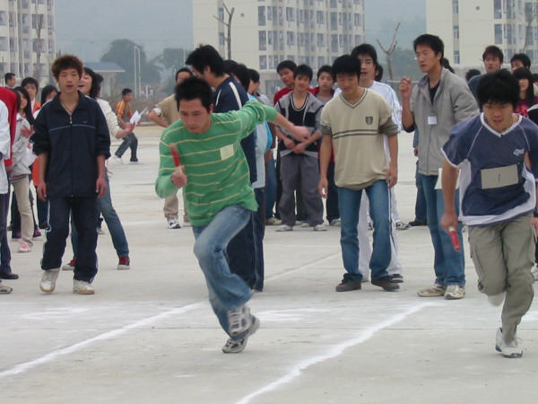 2006年3月7日下午体育部在运动场上举行了往返接力赛,每班派男、女各一队运动员参加。同学们在运动场上积极参与,啦啦队在运动场边高喊加油,气氛异常热烈。最后决出了一等奖一名,二等奖二名,三等奖三名。