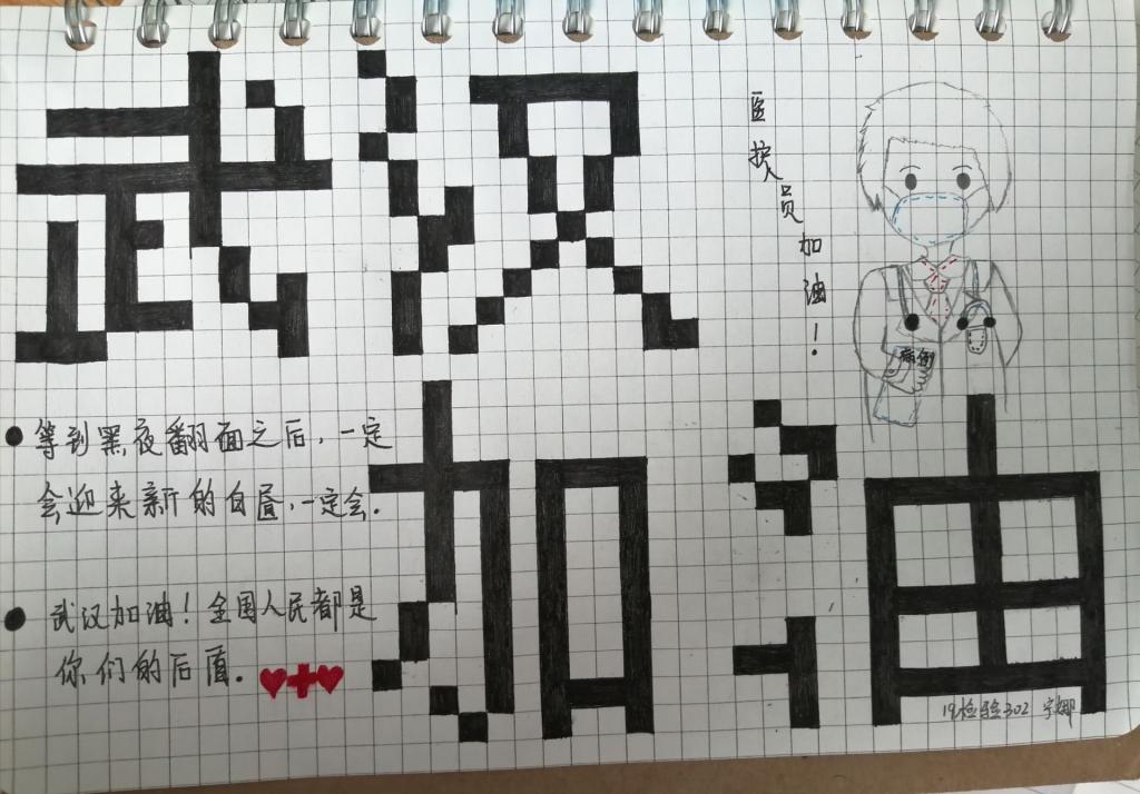 为了表达对奋战在一线的医务人员的支持和对武汉朋友们的鼓励,在抗疫期间,医学技术系的同学们纷纷书写祝福语,致敬一线医务人员,为武汉战胜疫情献上真挚的祝福。