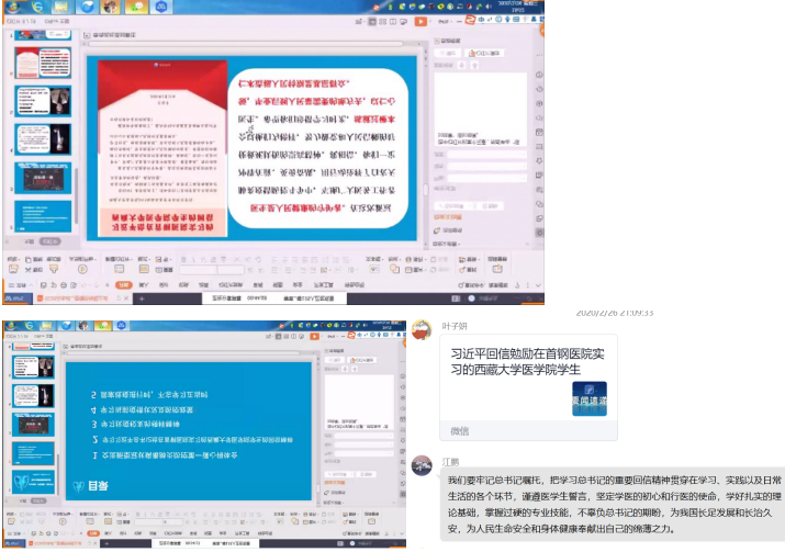 各班团支部迅速行动,开展 “学习习近平总书记重要回信精神”线上主题团日活动,同学们纷纷表示要牢记习近平总书记嘱托,珍惜学习时光,认真学好专业知识,练就过硬本领,时刻牢记医学生誓言,只争朝夕、不负韶华,毕业后到人民最需要的地方去,以仁心仁术造福人民!