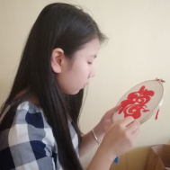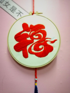 肖海露同学说:“古代人民在这个福字上寄托了老百姓最纯朴的愿望,祈求得到田地,以满足温饱需求的愿望。新中国成立后,在党的领导下,人民的生活水平得到巨大提高,现在“福”字往往更寄托了人们对未来美好生活的憧憬和对传统的传承。红色:代表了幸福,平安,喜庆等…用红色丝线绣成的福字,代表了我对未来美好的憧憬和义无反顾的坚持。即使未来的旅途中会有乌云遇皎月,但只要坚持,就一定会有守得云开见月明。”