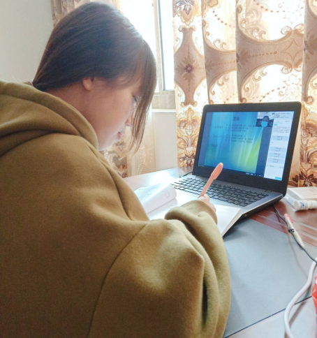 钟晓娜同学说:“在疫情如此严重的情况下也阻止不了我们学习的脚步。最近3个多月,由于疫情的原因,我们宅家学习。上网课就是通过软件在家直播。一台电脑,一部手机,一个笔记本,一支笔,怀着一颗求学的心开始学习。网课比起平常在学校学习需要更多自律,许多事情都需要靠自己自觉完成。希望在这次网课中,我们不仅能够学到新知识,还能做到自律,养成良好的学习习惯。”