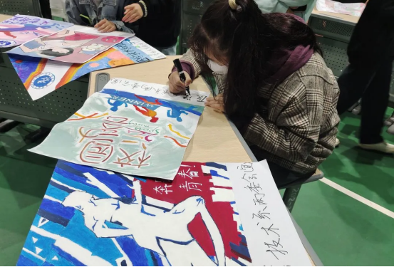 为了更好的赛程氛围,同学们利用课余时间布置大本营,用自己的双手绘制一张又一张精美的画报,并为运动员们提供了丰厚的补给,帮助运动员们迅速恢复体力。除此之外,还装饰了“惊鸿一瞬”照片墙和龙虎榜,记录医技师生运动会的精彩瞬间。
