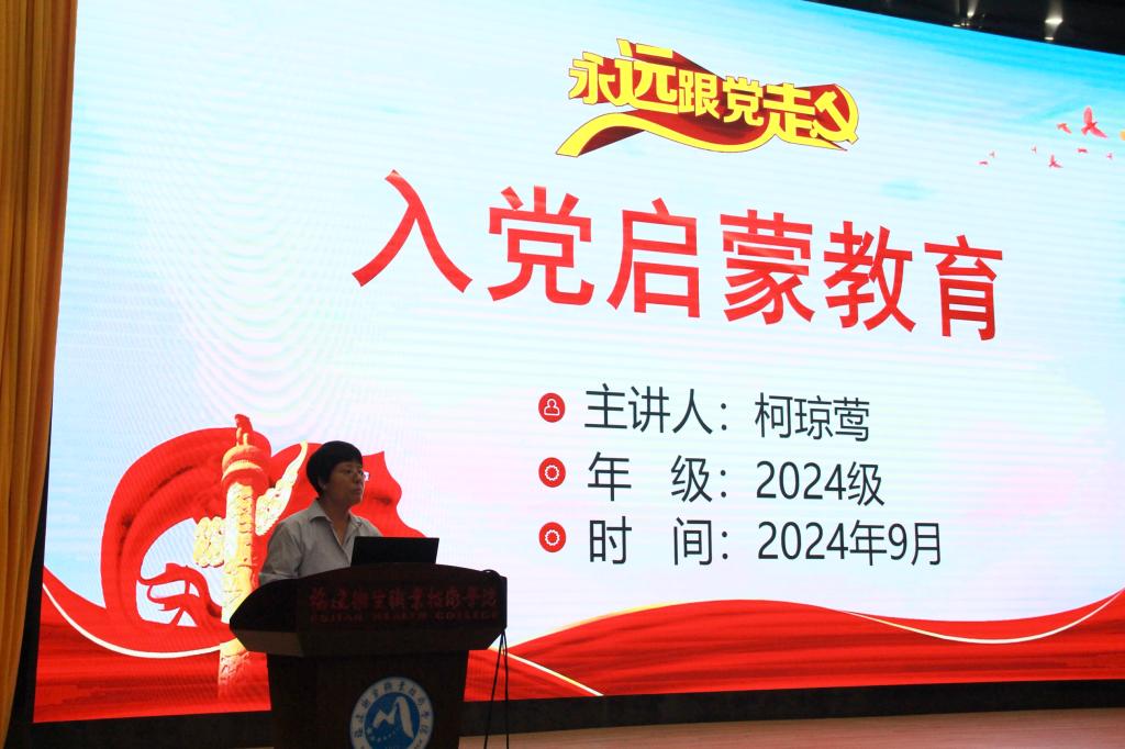 医学技术与工程学院党委书记柯琼莺先后以“中国共产党是怎样的政党?”“中国共产党党员是怎样的人?”“我们想要过怎样的人生 ?”三个问题进行入党启蒙与动员,结合视频资料,利用丰富生动的画面音效,引导新生们要加强理论修养、坚定政治立场、提升能力素质,积极向党组织靠拢,并以实际行动接受党组织的考验,争取早日加入中国共产党,真正做到不负时代,不负韶华。