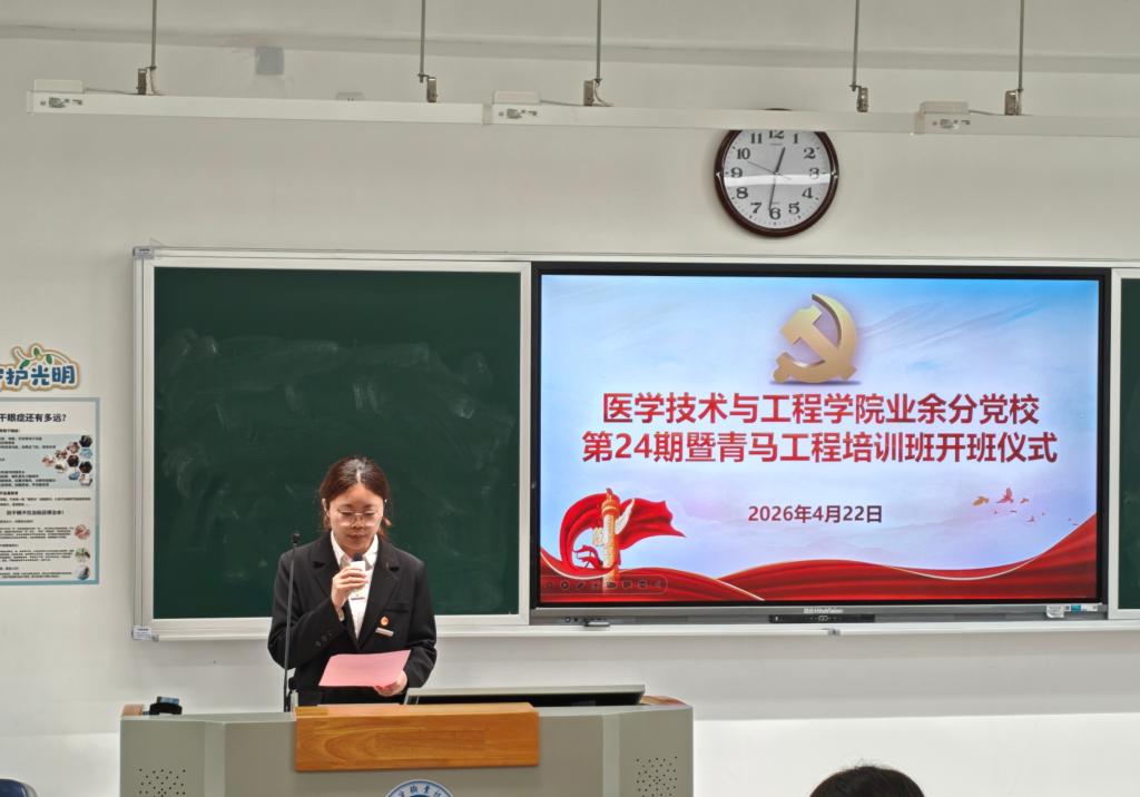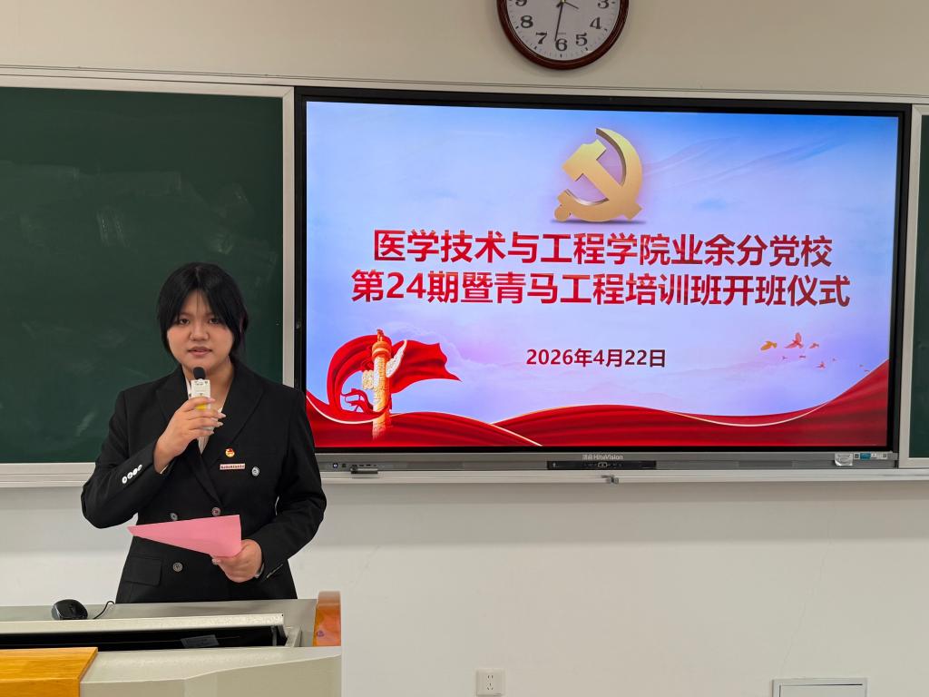 为深入学习贯彻党的创新理论,落实立德树人根本任务,加强青年思想政治引领,培育兼具家国情怀与专业素养的新时代医工青年,4月22日,医学技术与工程学院分党校第24期暨青马工程培训班开班仪式在医工四阶举行。学院党委书记柯琼莺、副书记林燕,学生党支部书记及全体学员出席,仪式由24检验302班余若萱主持。