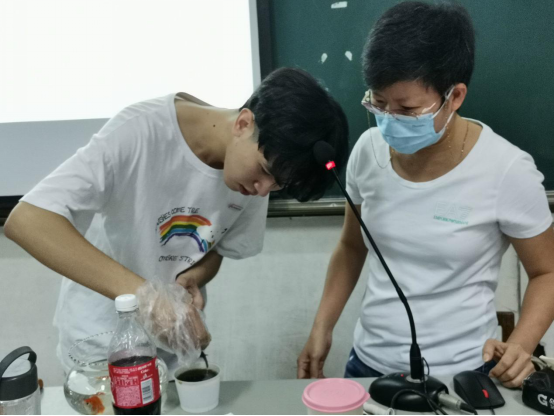 首先,董细敏结合丰富的临床案例,为师生们深入讲解了各类不安全食品对人体健康造成的不良影响。为了让师生们进一步认识垃圾食品潜在的危害,她还充分结合问答互动、视频观看、课堂小实验等,将深奥的合理膳食理念娓娓道来。