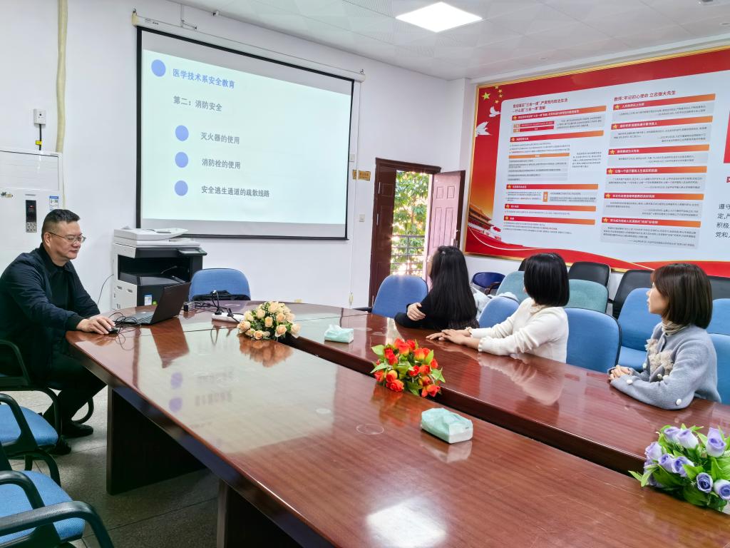 为增强2022年新入职教师的安全责任意识,医学技术系于2022年12月5日在会议室,由系安全员吴香书老师为3位新教师开设医学技术系安全教育讲座。讲座从安全意识、消防安全、实训室准入等三个方面对新教师进行培训,3位新教师均表示受益匪浅。