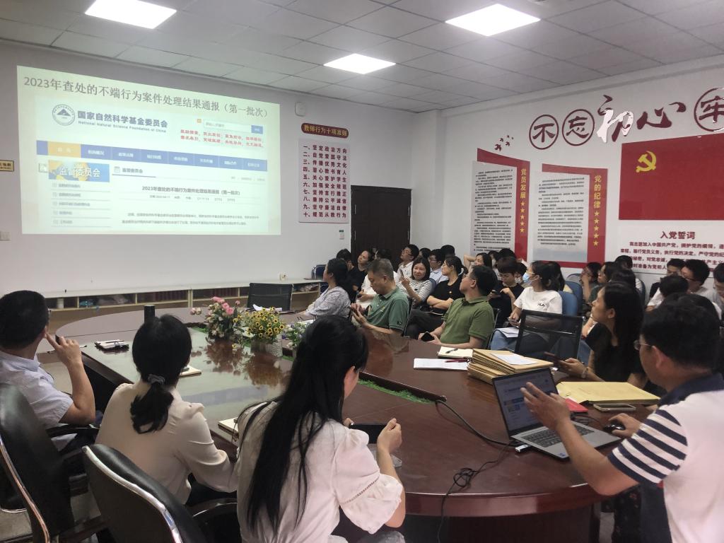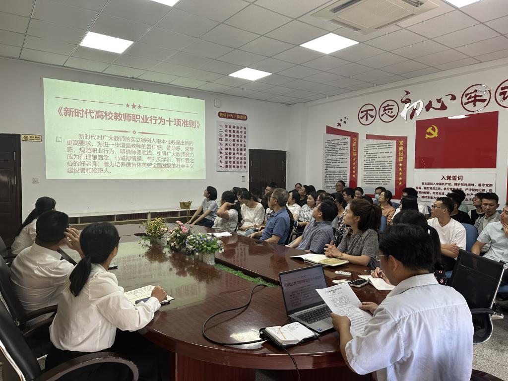 “以德立身、以德立学、以德施教、以德育德”教育理念,争做“四有”好老师,2023年6月29日下午在药学院会议室,我院组织全体教职员工重点学习了《习近平总书记关于教育的重要论述》、新时代教师职业行为十项准则等系列师德规范等内容,同时进行了学术诚信与师德师风专题学习,学习会由李泳宁副院长主持。