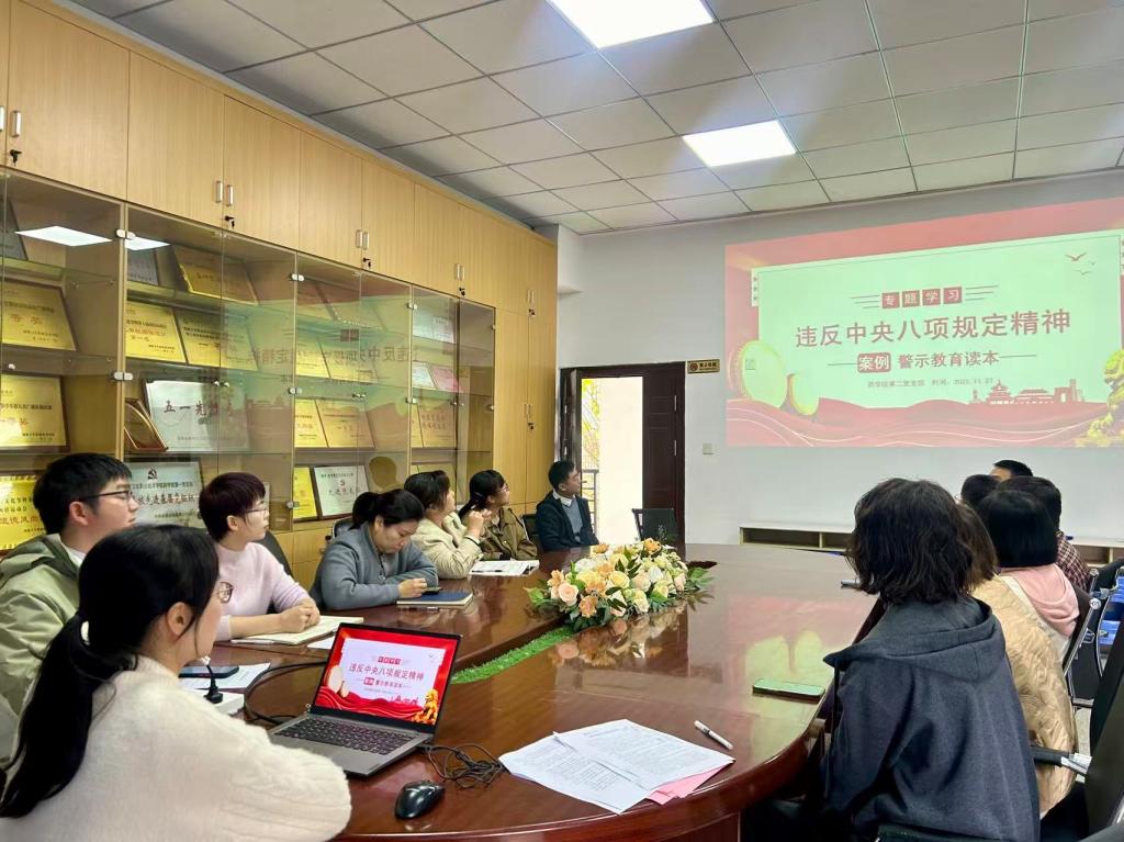 为深入贯彻中央八项规定精神学习教育,筑牢全体党员干部廉洁自律思想防线,11月27日,学院第二党支部开展《违反中央八项规定精神案例警示教育读本》专题学习会。本次活动由党支部书记刘全裕同志主持,全体教师党员参加会议。