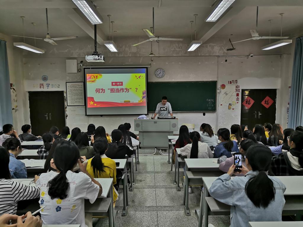 为进一步深入学习党的光辉历史,增强学员们敢于担当主动作为的意识,2019年11月11日,药学系党总支于药一阶开展业余分党校第八讲,本次学习的主题是“敢担当有作为、筑梦新时代”,由药学系学生党支部吴建民老师主讲。