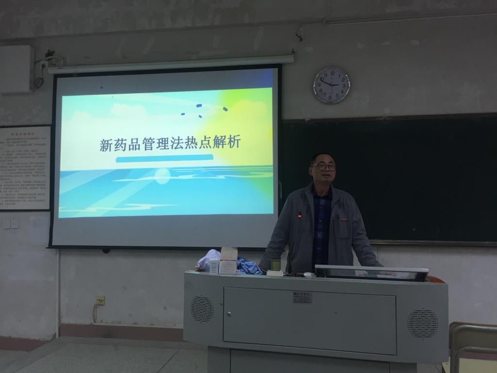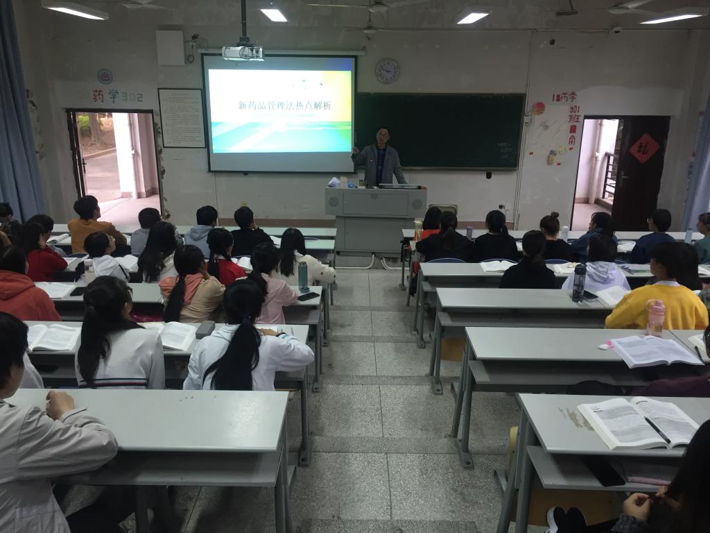 为加深同学们对当前药品市场新形势的了解,进一步掌握健康中国新理念,2019年11月22日,药学系肖健副主任在药一阶为18药学专业学生上主题为《新药品管理法热点解析》形势与政策课。